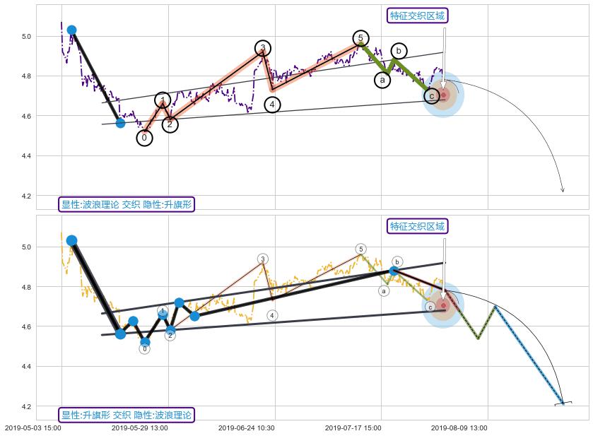 ➢ 波浪理论与升旗形信号事件周期长度级别相同,同周期信号事件