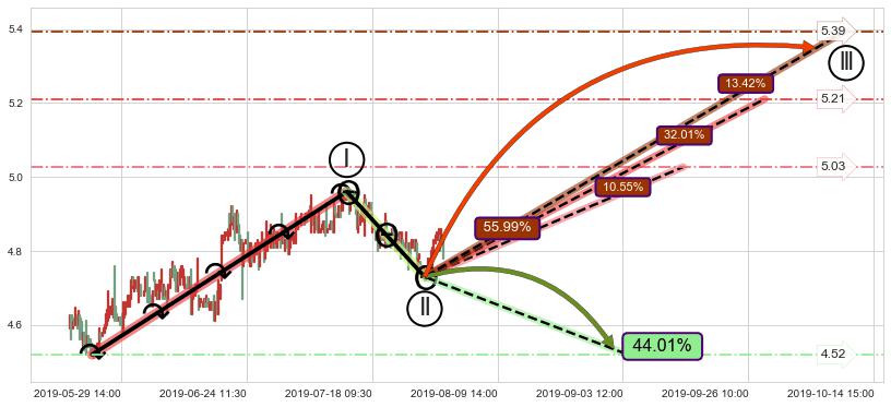 ➢ 循环浪继续向上【最高】位置(10-14:15, 5.39),匹配聚类样本比例23.98%, 可能性概率13.42%