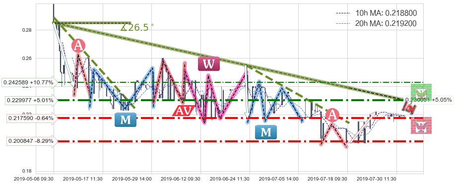➣ 预测:2019-09-09 15:00,【试探阻力】稳定目前下跌趋势的前提下,预测价格:0.204337