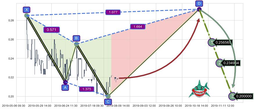 ➢ 距离预测D点位置有足够的上涨空间, 与看跌【鲨鱼】形态相反,实际方向【看涨】