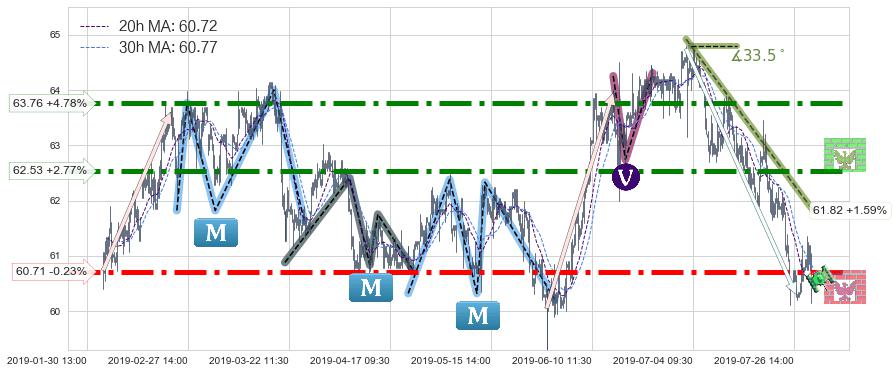 ♘ 阻力价格位62.53,可信任强度85.47%,距离最后交易2019-07-31 15:00形成的收盘价格60.85相差 +2.77%