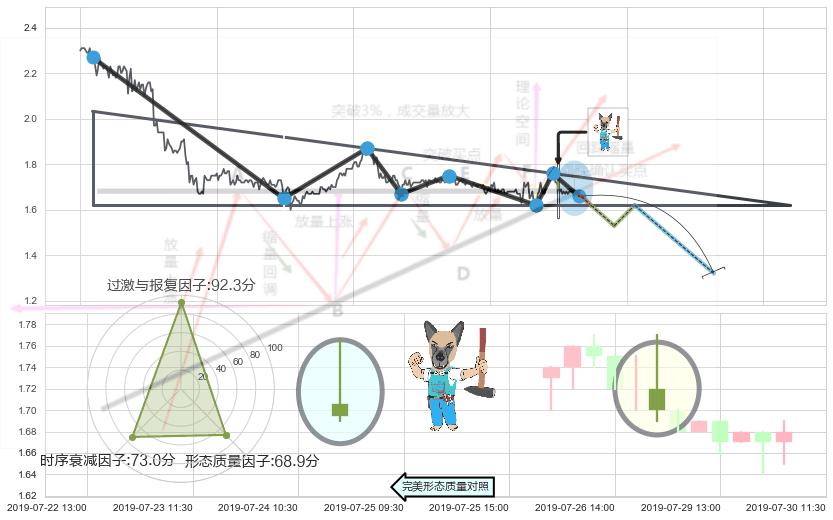 从2019-07-26 11:30至2019-07-31 15:00,共包含22个小时,阶段股价下跌-5.79%,阶段股价变动位移路程比: 1 : 2