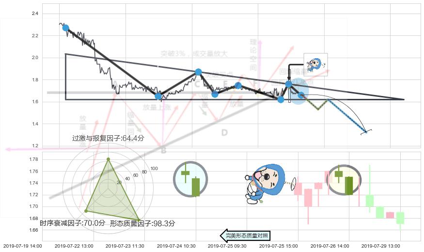 ➢ 🕰 价格走势在2019-07-26 13:00:00至2019-07-26 14:00:00期间形成下跌螺旋桨,残存影响值:-5.85