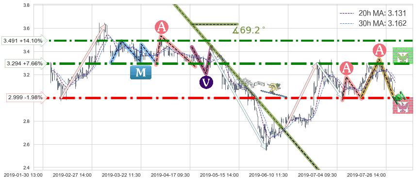 ♘ 阻力价格位3.294,可信任强度96.51%,距离最后交易2019-07-31 15:00形成的收盘价格3.060相差 +7.66%