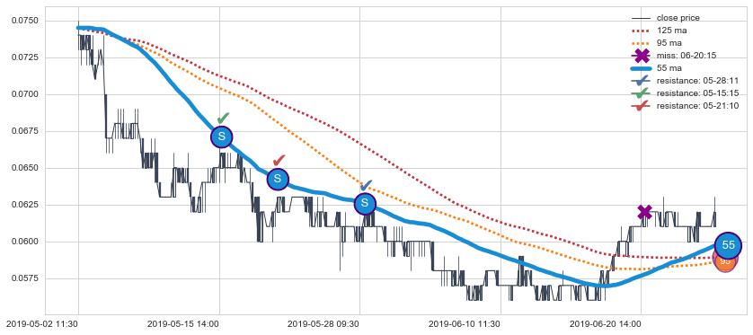 📝 多条均线形成死叉后走势最低价格达到: 0.0550000