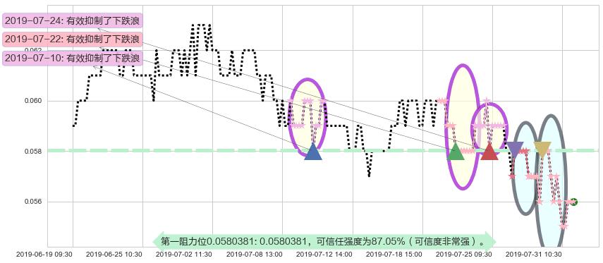 ♘ 阻力价格位0.0580381,可信任强度87.05%,距离最后交易2019-07-31 15:00形成的收盘价格0.0560000相差 +3.64%