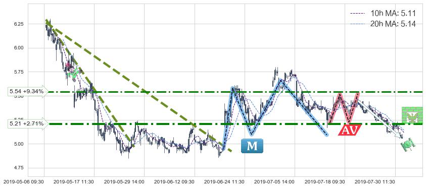 ♘ 阻力价格位5.54,可信任强度57.91%,距离最后交易2019-07-31 15:00形成的收盘价格5.07相差 +9.34%
