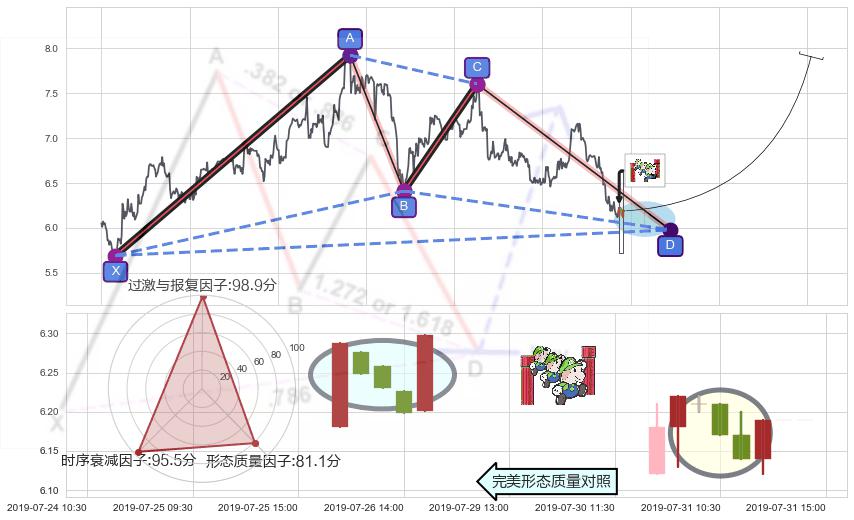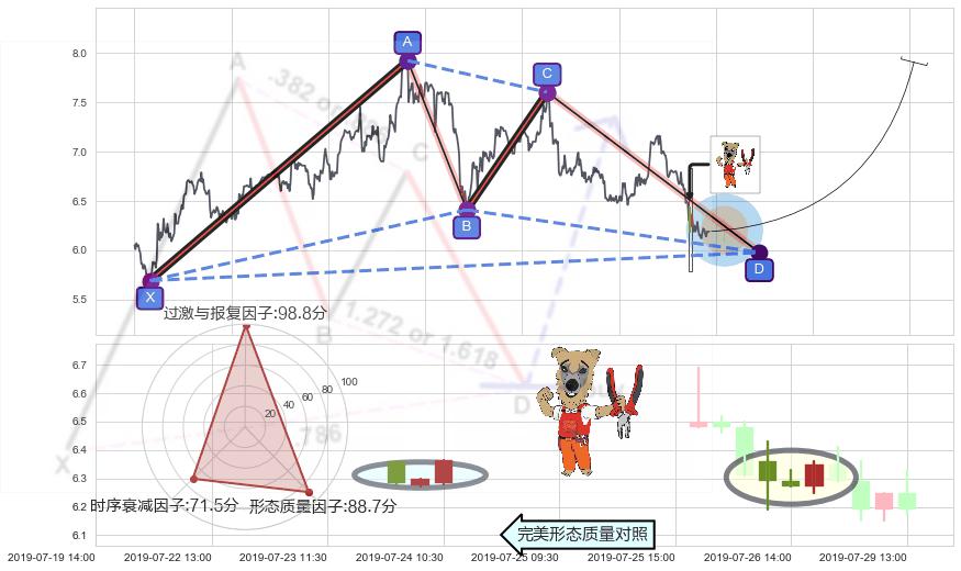 ➢ 🕰 价格走势在2019-07-30 00:00:00至2019-07-31 00:00:00期间形成底部尽头线(上山虎),残存影响值:8.26