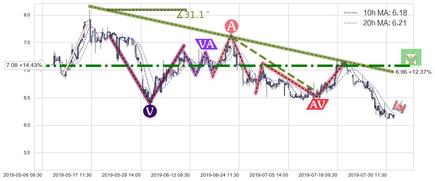 2019-07-19: 第一阻力位7.08强力阻拦了上升趋势,成功阻止了价格的继续上涨。