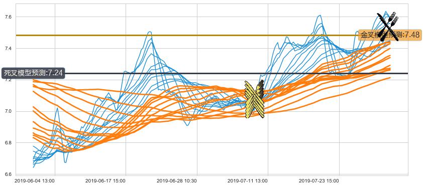 ➣ 30小时均线于(07-31 14:00: 7.52)形成【死叉】基于【死叉历史模型】预测死叉后最低波谷价格: 7.24, 死叉后最低价格7.52,已经下跌超出预测最低波谷价格, 预期反弹
