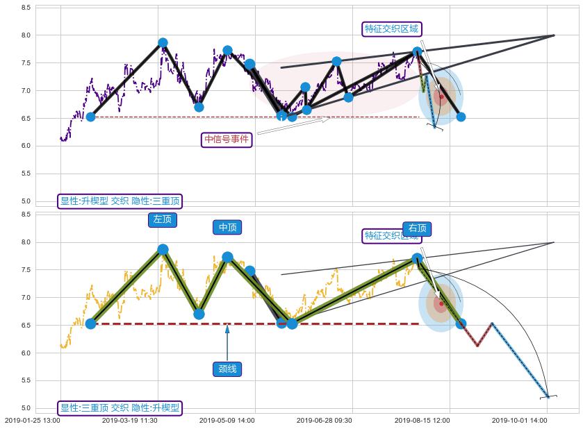 ➢ 升楔型属【中级别信号事件】三重顶属【长级别信号事件】中长周期组合信号事件,中长事件长度比48.75%