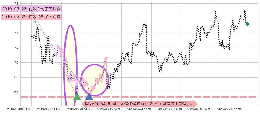 ♘ 支撑价格位6.54,可信任强度72.39%,距离最后交易2019-07-31 15:00形成的收盘价格7.52相差 -13.08%