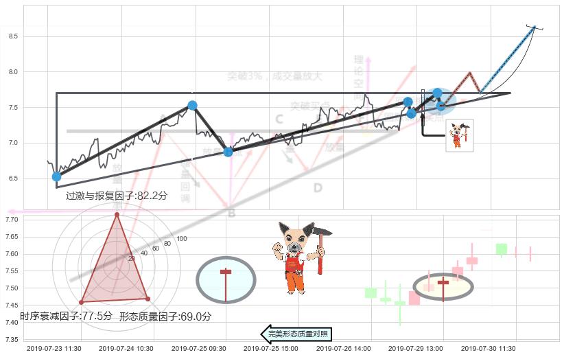 ➢ 🕰 价格走势在2019-07-26 00:00:00至2019-07-29 00:00:00期间形成中流砥柱形态,残存影响值:7.79