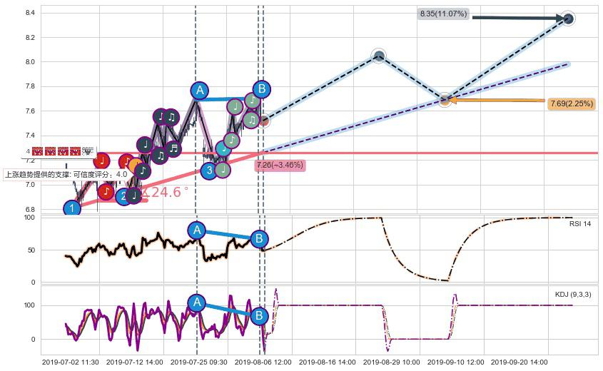 ➣ 预测:2019-09-03 14:00,【试探支撑】稳定目前上涨趋势的前提下,预测价格:7.69