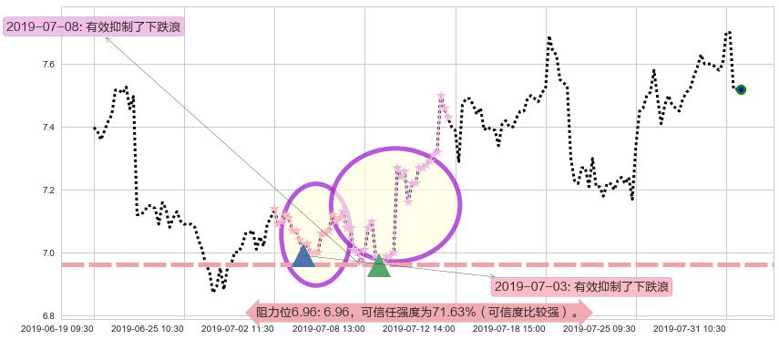 ♘ 支撑价格位6.96,可信任强度71.63%,距离最后交易2019-07-31 15:00形成的收盘价格7.52相差 -7.39%