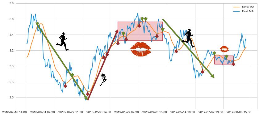 08-02 10:30至10-30 09:30 慢线与快线呈空头排列, 慢线与快线接触少,无缠绕