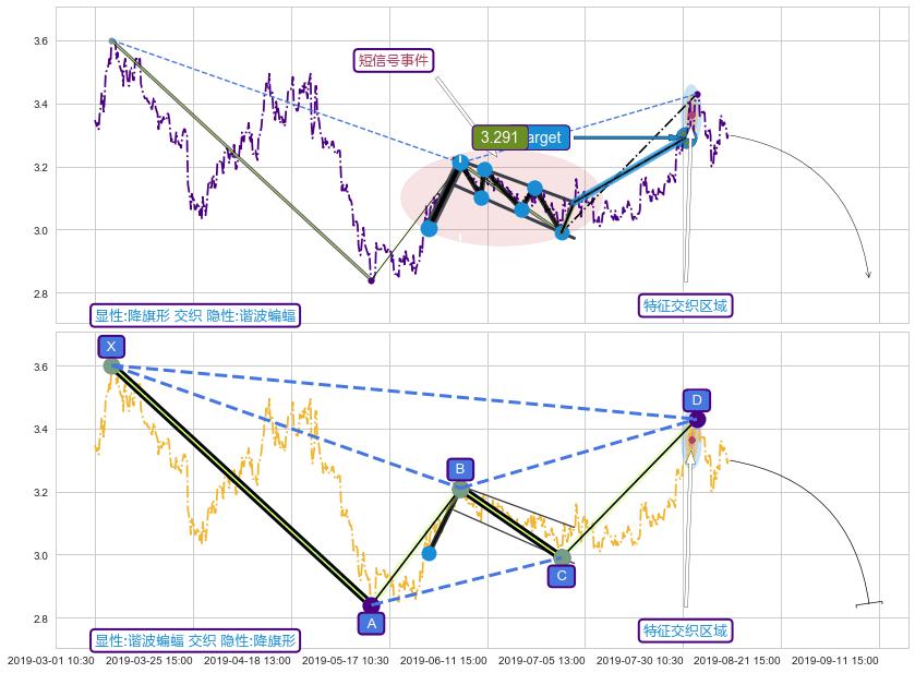 ➢ 降旗形属【短级别信号事件】谐波蝙蝠属【长级别信号事件】长短周期组合信号事件, 短长事件长度比24.92%