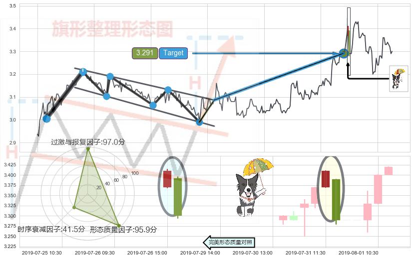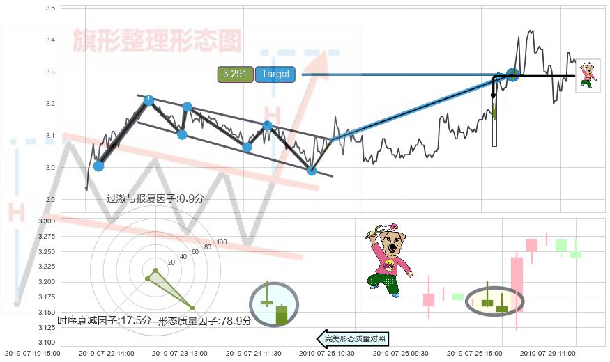 ➢ 【买1】: 激进型 买点 →(07-03:14: 3.086 )形成突破降⚑旗形【整理】形态