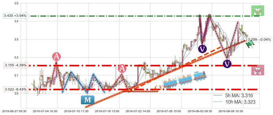♘ 支撑价格位3.155,可信任强度89.71%,距离最后交易2019-08-08 15:00形成的收盘价格3.300相差 -4.39%