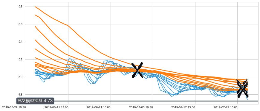 ➣ 120小时均线于(07-02 09:30: 5.06)形成【死叉】基于【死叉历史模型】预测死叉后最低波谷价格: 4.74, 死叉后最低价格4.72,已经下跌超出预测最低波谷价格, 预期反弹