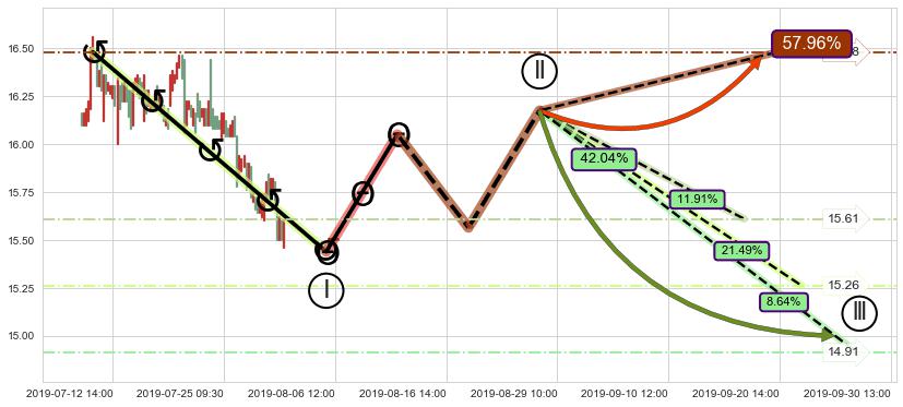 ➣ 预测:2019-08-05 10:00,【试探阻力】稳定目前下跌趋势的前提下,预测价格:15.58