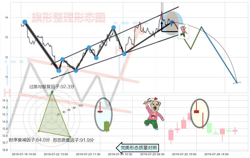 ➢ 🕰 价格走势在2019-07-25 15:00:00至2019-07-26 09:30:00期间形成射击之星形态,残存影响值:-5.36