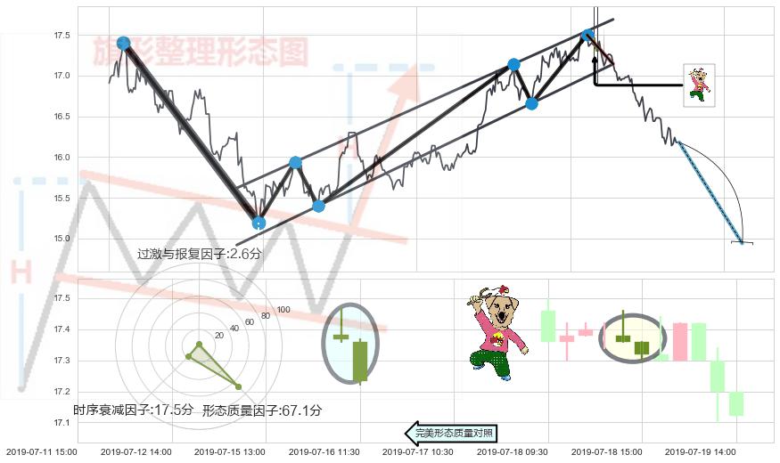 ➢ 🕰 价格走势在2019-07-19 09:30:00至2019-07-19 09:30:00期间形成看跌(高位倒锤头)流星线,残存影响值:-2.38