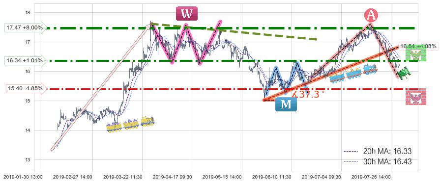 ♘ 阻力价格位16.34,可信任强度79.39%,距离最后交易2019-07-31 15:00形成的收盘价格16.18相差 +1.01%