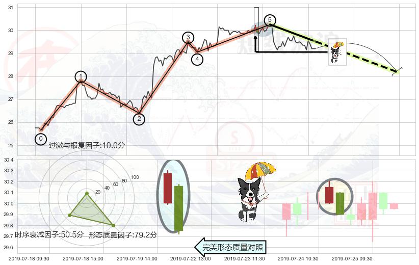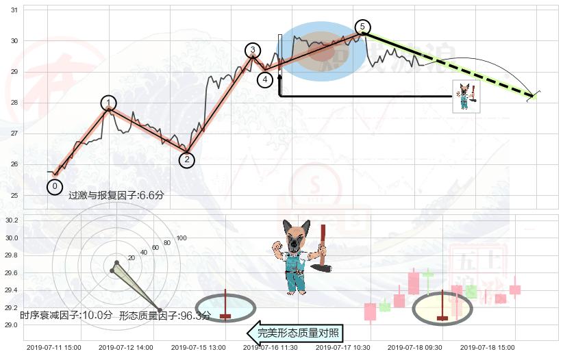 ➢ 🕰 价格走势在2019-07-18 09:30:00至2019-07-18 09:30:00期间形成看跌(高位倒锤头)流星线,残存影响值:-2.27