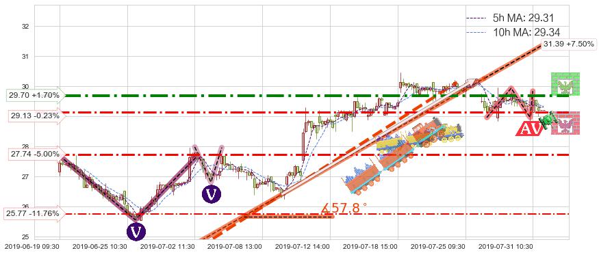 ➣ 【仅预测突破】最后价格:29.20与预测突破价格:29.52→【空间中等】后续最小【整理】第一目标价格→(08-05:13: 30.55 )