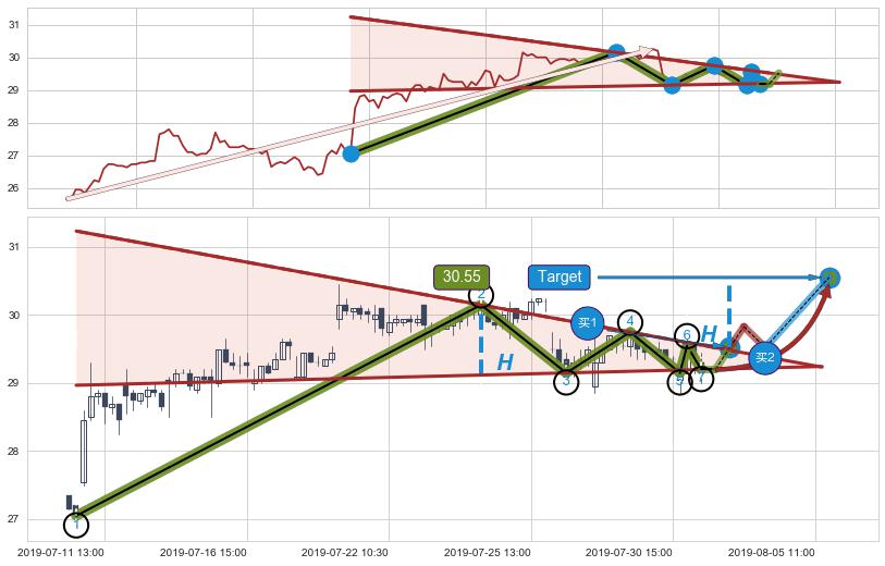 ➢ 最小中继整理涨幅→𝐇: 2.142 (𝐇楔型旗杆的长度:楔型起点→顶点)
