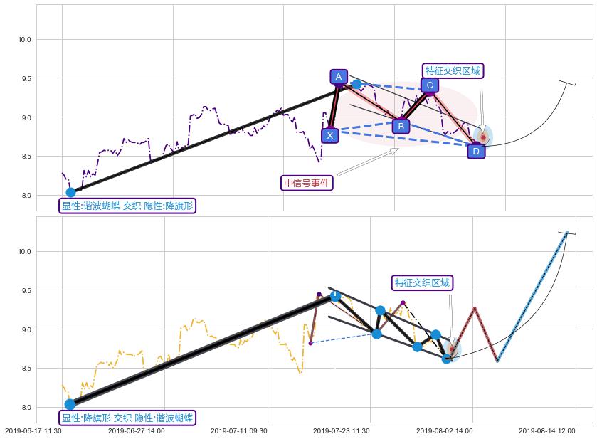 ➢ 谐波蝴蝶与波浪理论信号事件周期长度级别相同,同周期信号事件