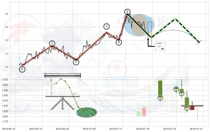 ➢ 🕰 价格走势在2019-07-23 14:00:00至2019-07-23 15:00:00期间形成下跌螺旋桨,残存影响值:-3.64