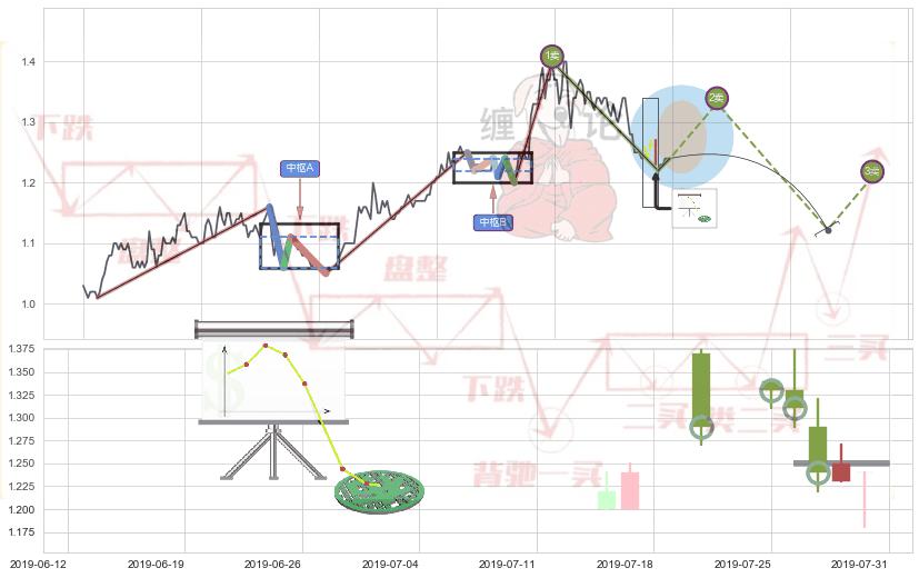 从2019-07-19 13:00至2019-07-23 14:00,共包含14个小时,阶段股价下跌-2.49%,阶段股价变动位移路程比: 1 : 10