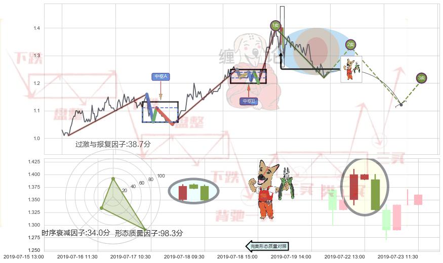 从2019-07-23 14:00至2019-07-31 15:00,共包含38个小时,阶段股价下跌-8.93%,阶段股价变动位移路程比: 1 : 4