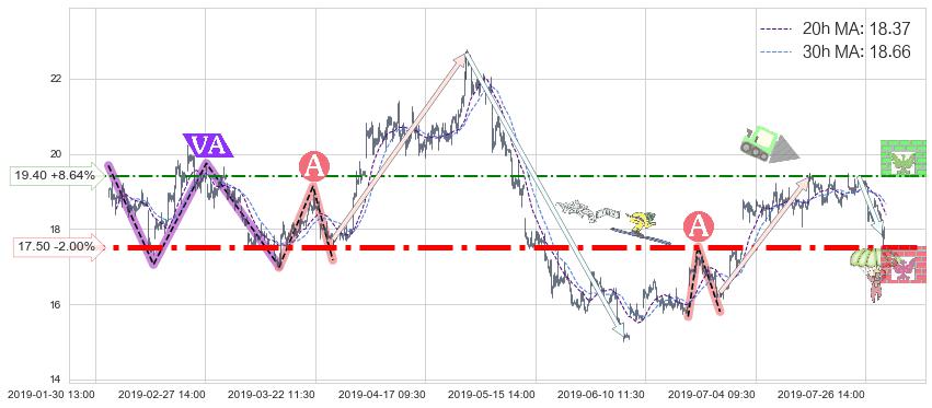 ♘ 阻力价格位19.40,可信任强度54.93%,距离最后交易2019-07-31 15:00形成的收盘价格17.86相差 +8.64%
