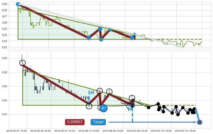 ➢ 07-23:14到达第❶价格目标位置0.220000