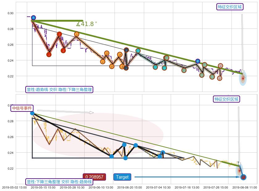 ➣ 预测:2019-08-16 10:00,【试探阻力】稳定目前下跌趋势的前提下,预测价格:0.210374