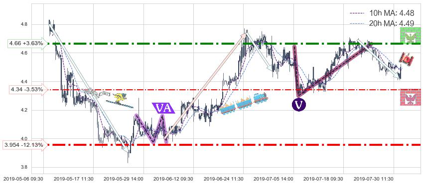 ♘ 阻力价格位4.66,可信任强度77.94%,距离最后交易2019-07-31 15:00形成的收盘价格4.50相差 +3.63%