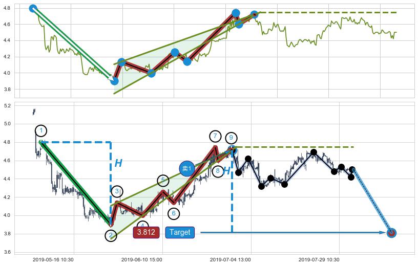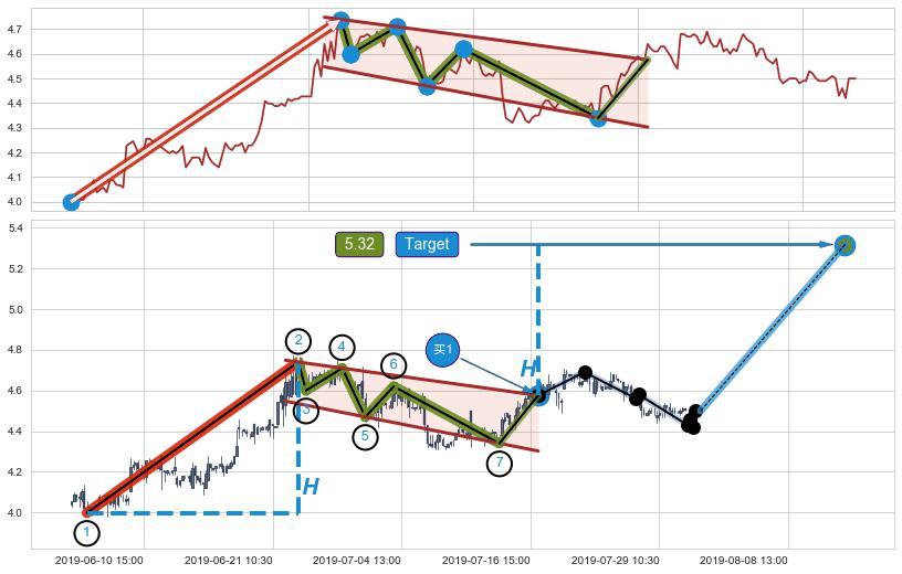 ➣ 最小中继整理涨幅→𝐇: 0.7420 (𝐇旗杆的长度:旗杆起点→顶点)
