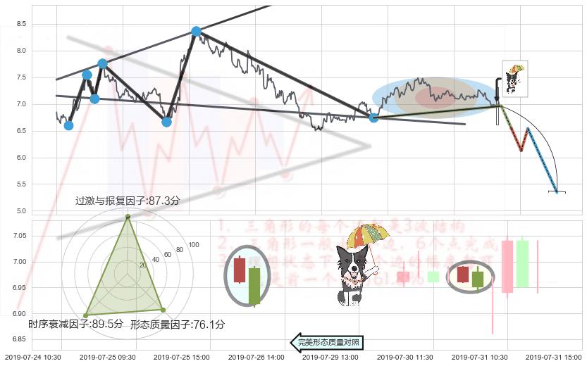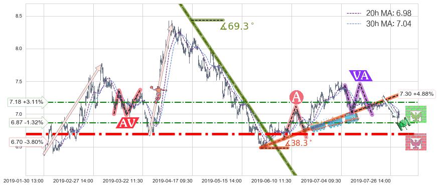 ♘ 阻力价格位6.87,可信任强度52.50%,距离最后交易2019-07-31 15:00形成的收盘价格6.96相差 -1.32%