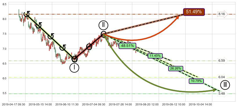 ➣ 大趋势循环浪继续向下概率48.51%