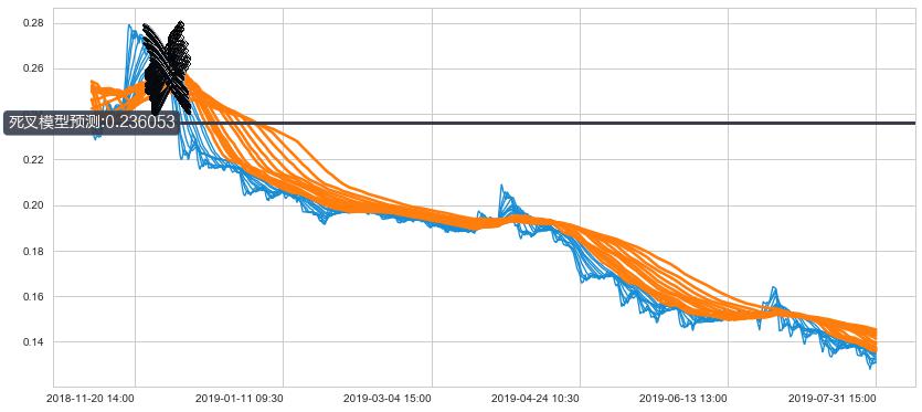 ➢ 90小时均线于(11-30 09:30: 0.259478)形成【死叉】基于【死叉历史模型】预测死叉后最低波谷价格: 0.240393, 死叉后最低价格0.124000,已经下跌超出预测最低波谷价格, 预期反弹
