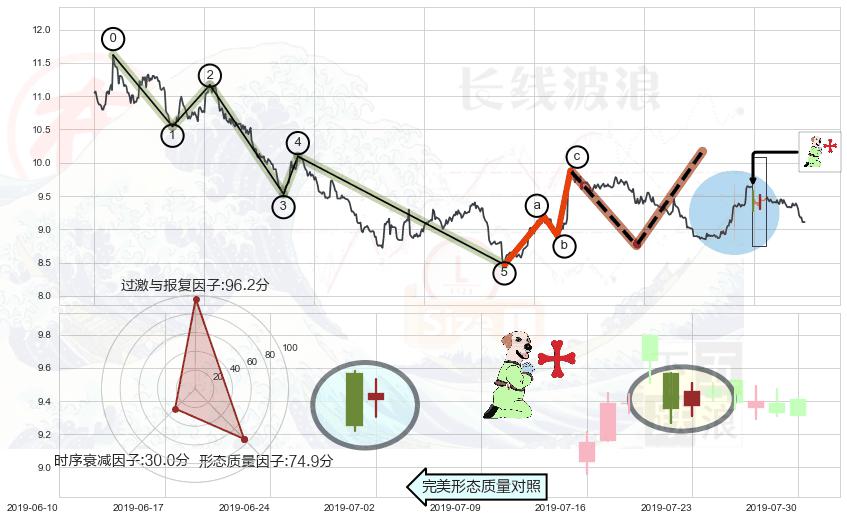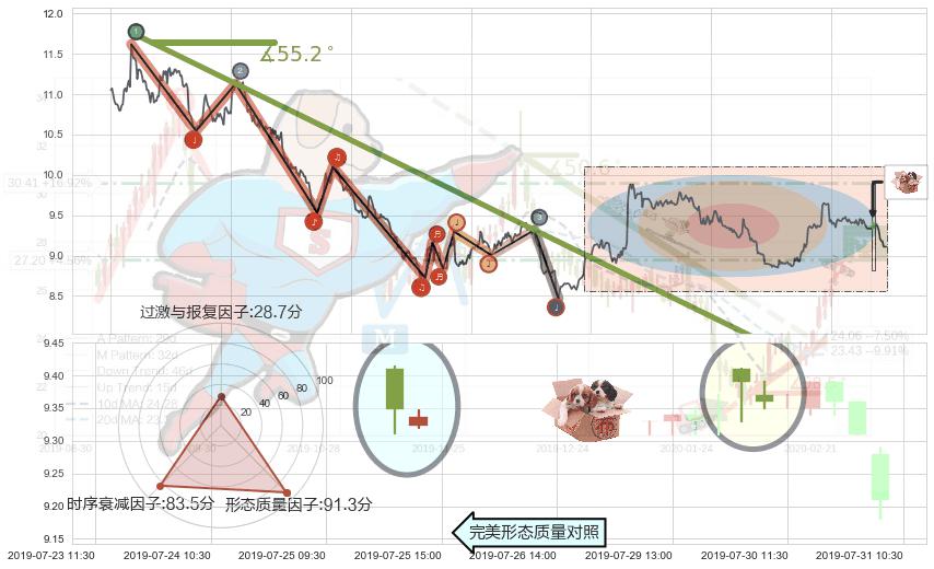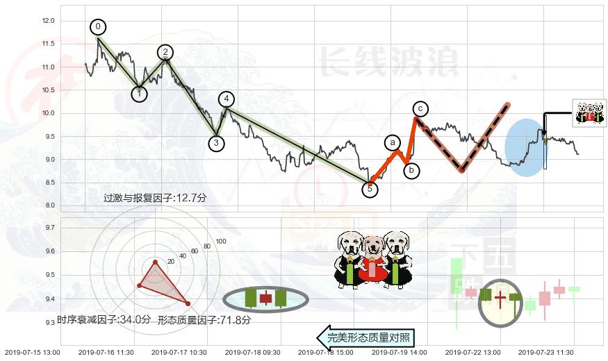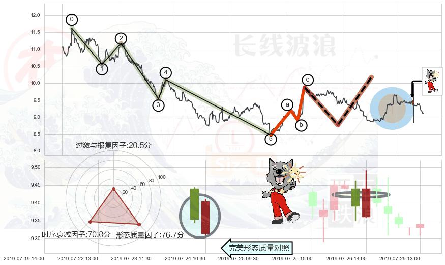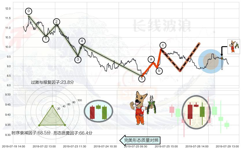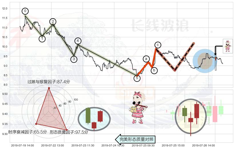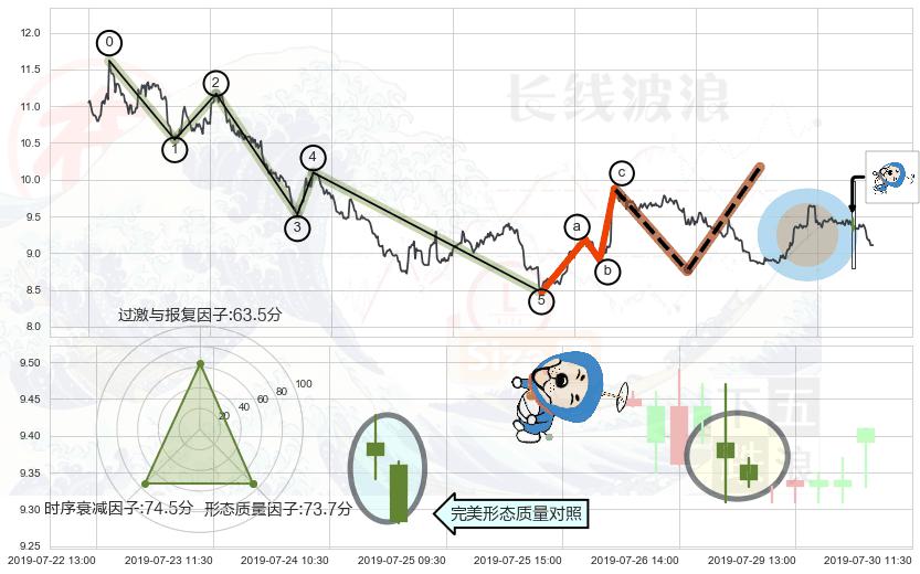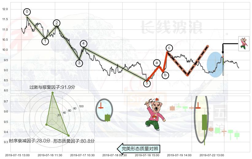 ➢ 🕰 价格走势在2019-07-30 09:30:00至2019-07-30 10:30:00期间形成底部尽头线(上山虎),残存影响值:5.11