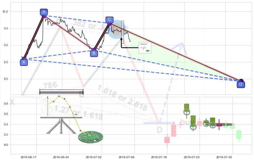 ➢ 下降插入线(坠落线) 🔜 谐波蝴蝶c拐点下跌阻力 综合量化分数:37.34 【偏空】