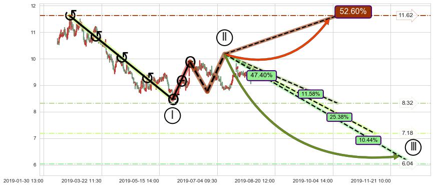 ♘ 阻力价格位11.21,可信任强度72.62%,距离最后交易2019-07-31 15:00形成的收盘价格9.11相差 +23.09%