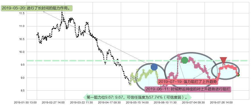 ♘ 阻力价格位9.67,可信任强度57.74%,距离最后交易2019-07-31 15:00形成的收盘价格9.11相差 +6.09%