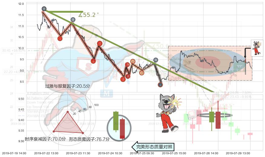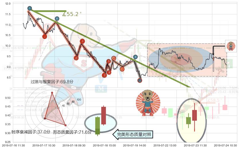 ➣ 2019-02-26 09:30-2019-06-04 10:30下跌趋势存在反转上涨[机会],其原下跌趋势的阻力位(7.18)已被突破[强支撑信号],原下跌趋势角度: 55.2˚