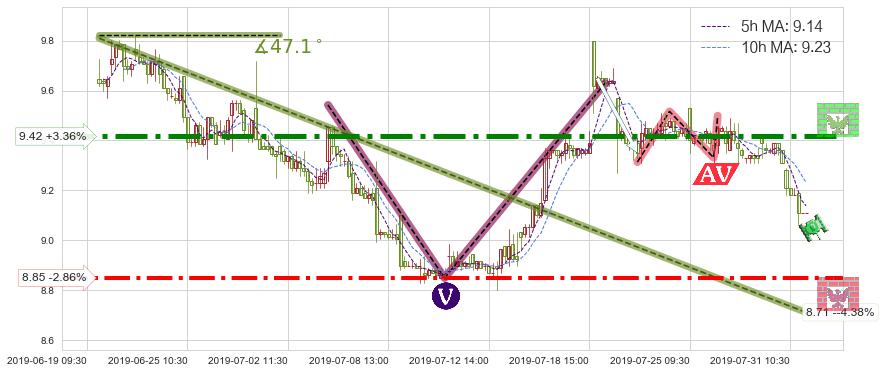 ♘ 阻力价格位9.42,可信任强度86.84%,距离最后交易2019-07-31 15:00形成的收盘价格9.11相差 +3.36%