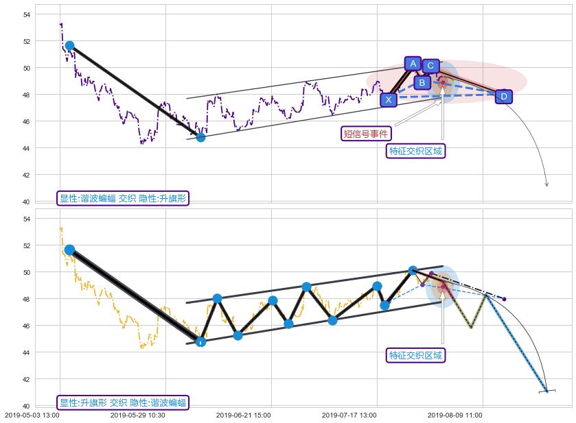 ➢ 谐波蝙蝠属【短级别信号事件】升旗形属【长级别信号事件】长短周期组合信号事件, 短长事件长度比14.69%